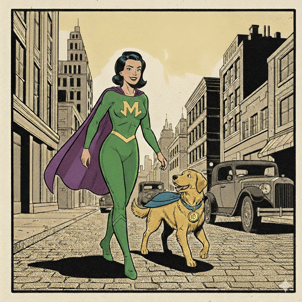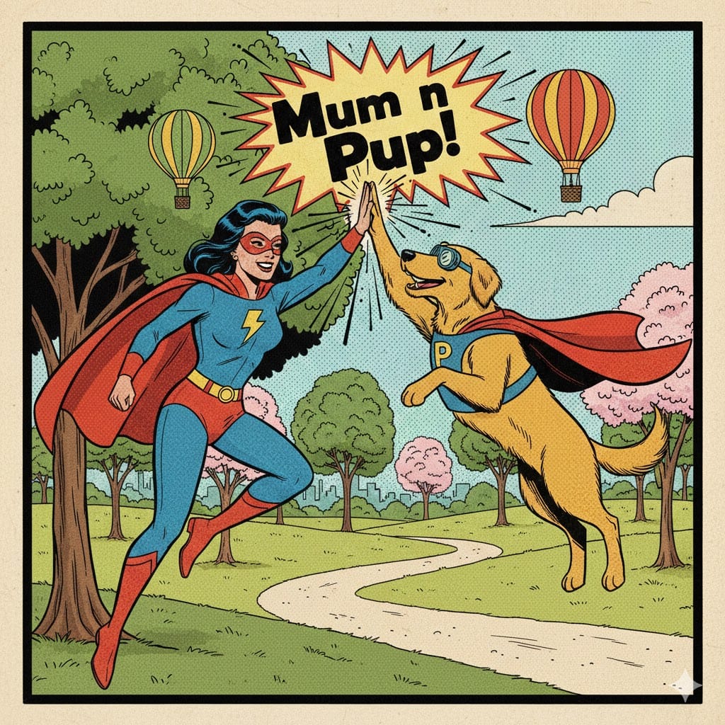 Let your mild-mannered alter ego fall away, and don the cape of your Pup's hero, Mighty Mum.